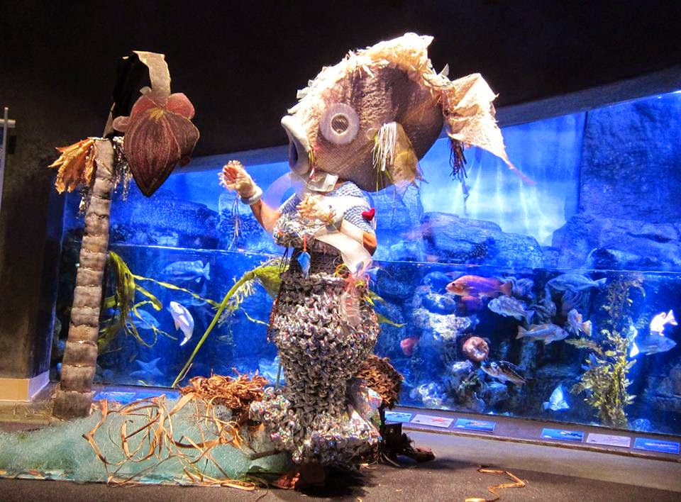 :Fun night at Aquarium of the Pacific: Night Dive with my Fishy Mermaid costume and Banana Island installation, Low Lying Ground Fog Cloud 9 and Micro/Macro/Connections Banana Fiber performance!